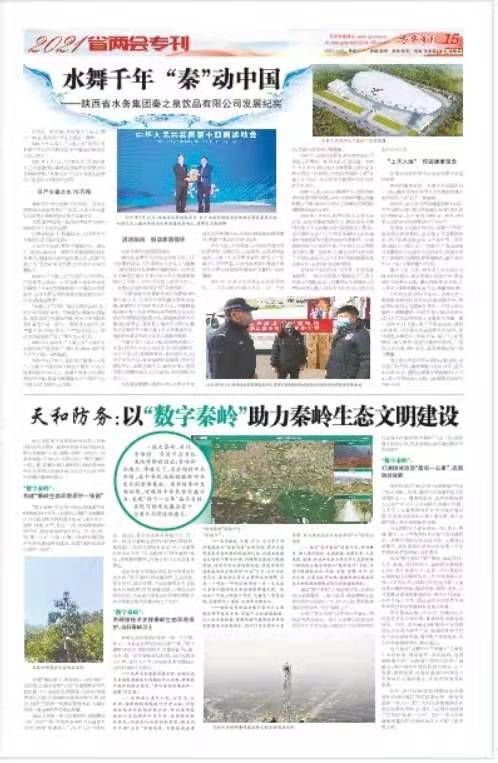 2021年1月26日,由陜西省政協(xié)主管、主辦的《各界導(dǎo)報(bào)》,以“天和防務(wù):以‘?dāng)?shù)字秦嶺’助力秦嶺生態(tài)文明建設(shè)”為題,以1/2版的篇幅對(duì)天和防務(wù)數(shù)字秦嶺示范項(xiàng)目進(jìn)行了報(bào)道。現(xiàn)轉(zhuǎn)載如下: